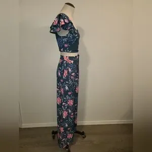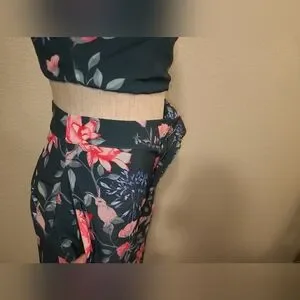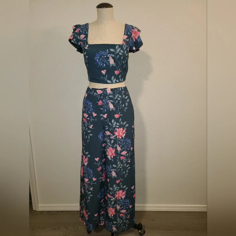 The pants are wide leg with double clasp/Zipper closure with slits down each leg.
