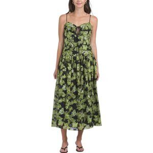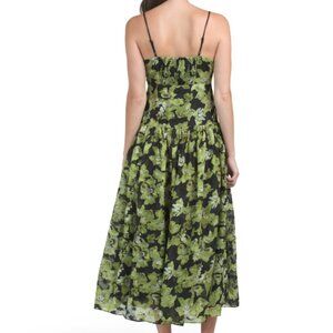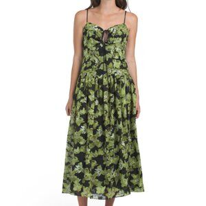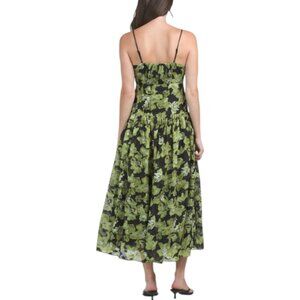 BRAND NEW Color: Black/Green floral pattern, adjustable shoulder straps, smocked back panel, fully lined, keyhole front with tie detail sleeveless, v-neck, maxi dress 50.5in long, taken from size S side zip and hook closure polyester imported hand wash
