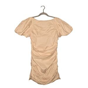 ENDLESS ROSE NEW $100 Cream Ruched Short Puff Sleeve Mini Dress Small