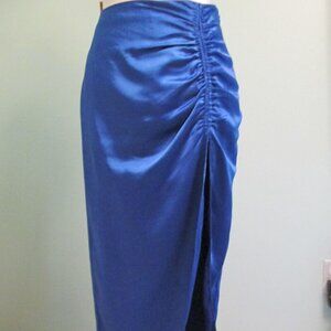 ENDLESS ROSE Satin Finish Front Slit Midi Skirt-Royal Blue-Med-NWT