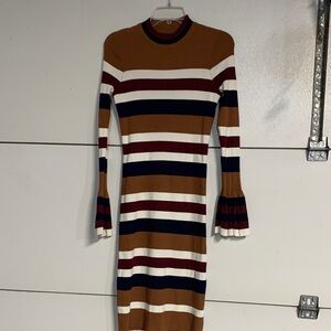 ENDLESS ROSE WOMENS STRIPED SWEATER DRESS BELL SLEEVE SMALL