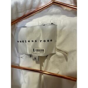 Make a versatile and chic statement with this ENDLESS ROSE sleeveless vest blazer, crafted from a lightweight white linen blend that combines relaxed ease with polished structure. The oversized, drop-shoulder design creates a modern, tailored look without compromising comfort. Featuring a single-button closure and classic notch lapels, it channels a sleek and minimalist aesthetic ideal for layering. Designed in size Small, the fluid silhouette drapes beautifully whether over a tee and jeans or styled with tailored pants and heels. Perfect for spring-to-summer dressing, this blazer adds elevated, breezy sophistication to any ensemble.