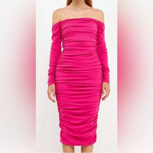 ENDLESS ROSE Women's Ruched Midi Dress in Fuchsia
