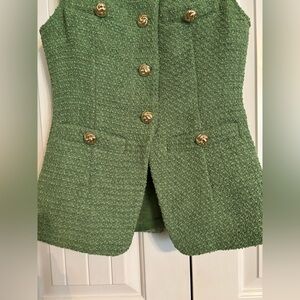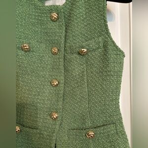 ENDLESS ROSE tweed buttoned set in vivid green. Features split top and matching shorts. Shell and lining are 100% polyester. Size S. Perfect condition, no flaws.