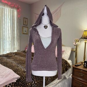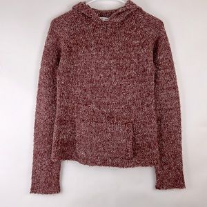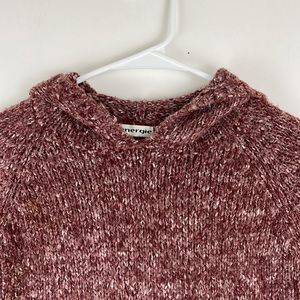 EUC ENERGIE hoodie sweater with kangaroo pouch pocket in front. Plum raspberry color. 100% acrylic. RN 33364. Hand wash cold; lay flat to dry.