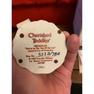 ENESCO CHERISHED TEDDIES 1995 NIKOLAS~YOU'RE AT THE TOP OF MY LIST~ 141100