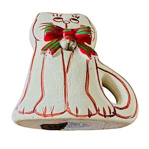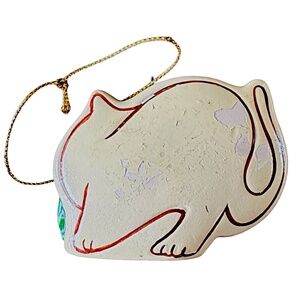 ENESCO Vintage Ceramic Christmas Kitten Ornament (pair of 2) Cream Hand Painted