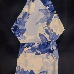 really pretty navy blue and floral dress size 8P in excellent condition dress has a little stretch to it silver chain embellishment great dress for church