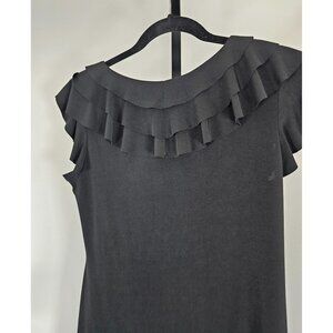 ENFOCUS STUDIO Sleeveless Ruffled Front Collarless Shift Dress-Black-SZ 10