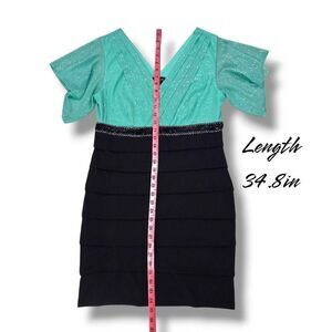 ☆V-neck short flutter sleeve high waisted sequin waistline glitter bandage dress.
