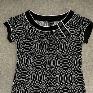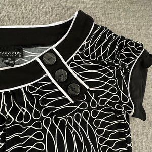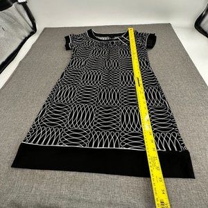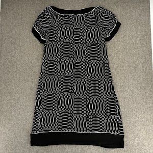 ENFOCUS Studio Shift Dress Black & White Short Sleeve Size 6 Stretch Round Neck