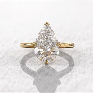14k Yellow Gold 3CT Moissanite Pear Shaped Stone Size 7