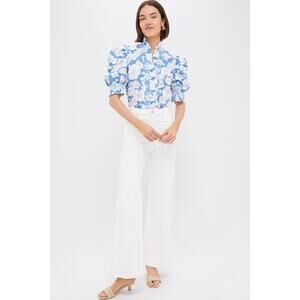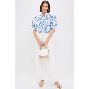 Printed with an eye-catching floral print, the Blue Floral Ruffle Neck Aria Blouse is effortlessly feminine and super chic. A ruffled stand collar leads into a frill that runs all the way down the front of this silhouette, making it a statement piece that is still wearable for any occasion, and short puff sleeves give a touch of dramatic volume. Pair with a white denim and your favorite sandals for an easy yet elevated outfit formula.