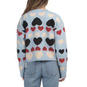 ENGLISH FACTORY Blue Multi Wool Blend Crew Neck Heart Cardigan