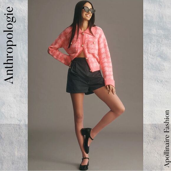 ANTHROPOLOGIE BY ENGLISH FACTORY HOUNDSTOOTH CROPPED CARDIGAN SWEATER IN PINK MEDIUM NWOT