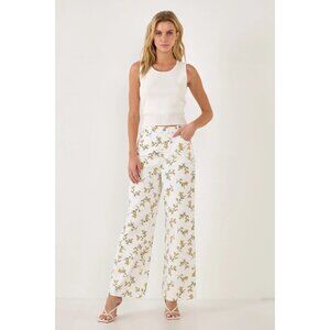 ENGLISH FACTORY Floral Wide Leg White CROP JEANS Size MEDIUM