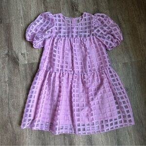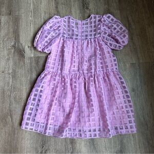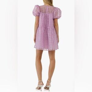 ENGLISH FACTORY Gridded Puff Organza Purple Mini Dress