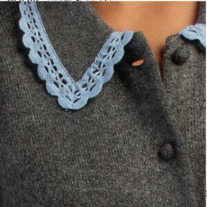 ENGLISH FACTORY Lace Trimmed Puff Sleeve Knit Cardigan Sweater