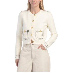ENGLISH FACTORY Stitch Detail Puff Sleeve Cardigan