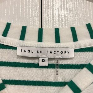 ENGLISH FACTORY Stripe Knit Shirt Womens Green White Puff Short Sleeves Size 1X