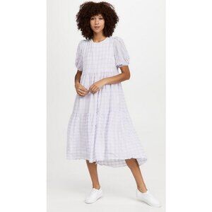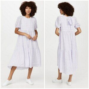 💕ENGLISH FACTORY💕 Tiered Gingham Seersucker Maxi Dress ~ Lavender Medium M NWT