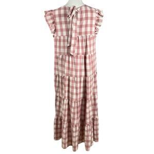 ENGLISH FACTORY Tiered Maxi Dress Cottage Baby Doll Gingham Pink Large Prairie
