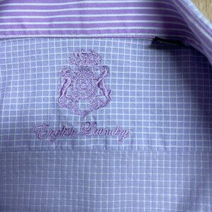 ENGLISH LAUNDRY DRESS SHIRT CHECK TEXTURED FLIP CUFF MENS SIZE 17.5 34/35 PURPLE