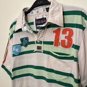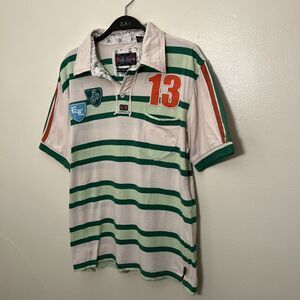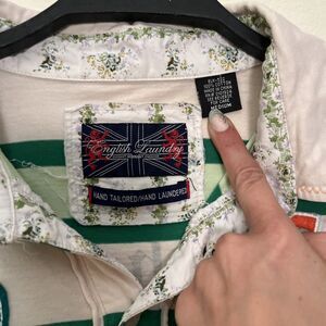 Absolutely beautiful and super rare Manchester rugby shirt by English Laundry. 26 1/2 inches in length, and 19 inches from armpit to armpit. In amazing condition with no flaws.