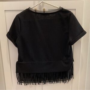 You’ll love this trendy top by English Rose. The cropped top features a fringe bottom front and back. The neckline has a small sheer fabric detail adding to the fun features of this top. Excellent preworn condition. No flaws! Purchased at a local boutique.