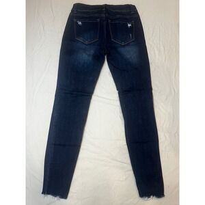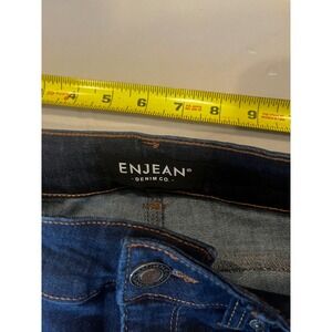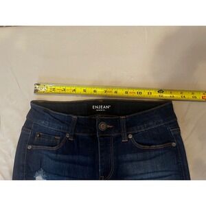 Keywords: ENJEAN jeans, womens jeans, dark wash jeans, distressed jeans, ripped jeans, frayed hem jeans, skinny jeans, denim jeans, casual jeans, trendy jeans, size 5 jeans, junior size jeans, blue jeans, destroyed jeans