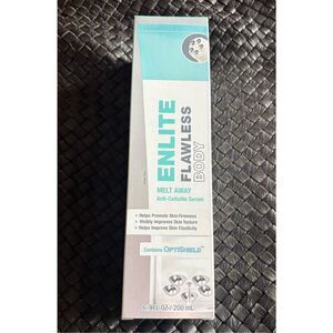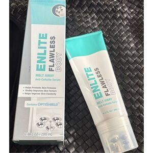 ENLITE makes this Flawless Body Melt Away Anti-Cellulite Serum with Rollerball Applicator. This is 6.7 fluid ounces and NWTIB. This serum was designed to reduce the appearance of cellulite and improve skin texture. It helps promote skin firmness and visibly improves the skin texture. It aids in improving skin elasticity and contains "OptiShield." It's enriched with caffeine to stimulate blood flow and breakdown fat cells. Deeply hydrating. It has a unique rollerball applicator to ensure product is massaged evenly onto skin for maximum results. Dermatologist tested and NWTIB!