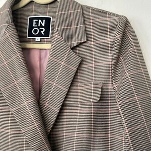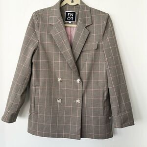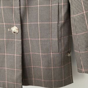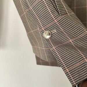 Pink & brown plaid double breasted jacked with hi/lo hemline in EUC.