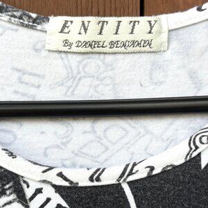 ENTITY - Daniel Benjamin 90s Y2K Graffiti Print 3/4th Sleeve Black & White SZ XL preowned