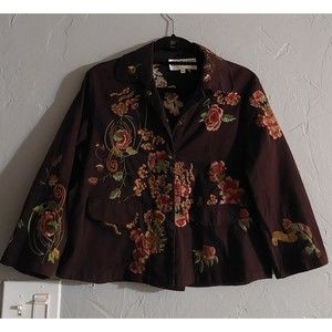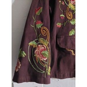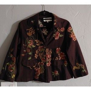 ENTITY JACKET Women M, 17.5 inch of Armp To Armp, This jacket is made from high-quality cotton fabric with an embroidered design. The buckle closure and collared feature give it a classic and vintage look. It comes in a beautiful brown color that will complement any outfit.