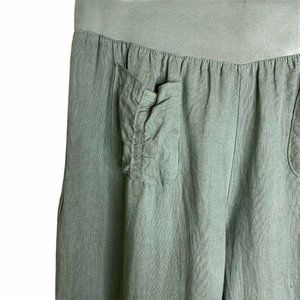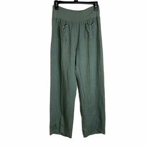 ENTRACTE Green Linen Elastic Waist Back Pockets Relaxed Fit Pants Women S Italy