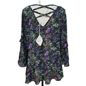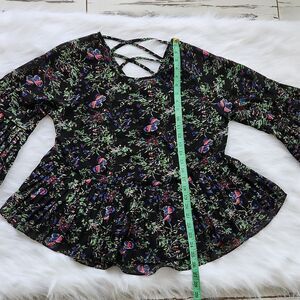ENTRO by Anthropologie floral pleated blouse crisscross back