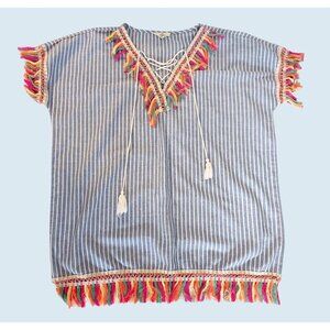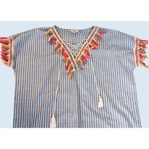 ENTRO Boho Fringe Tassel Tunic Cover-Up Top Shirt Size LG