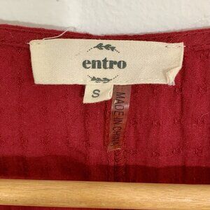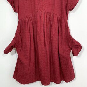 ENTRO Dress Women’s Baby Doll Brick Red Midi V Neck S/S Lined w/ Pockets SZ S