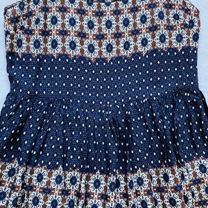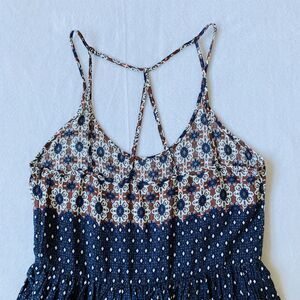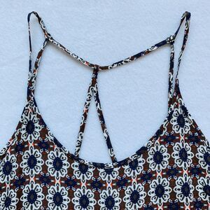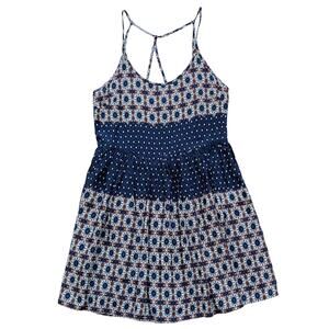 ENTRO Multicolor Sundress Sz Small Strappy Lined Mixed Print Blue Brown Rayon