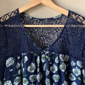 Description: Entro Navy Blue Floral Bell Sleeve Mini Dress