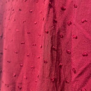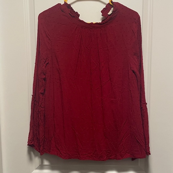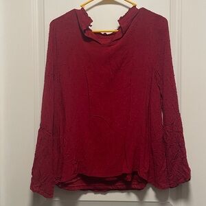 Chic deep red blouse with textured fabric, size small, slightly flared sleeves.