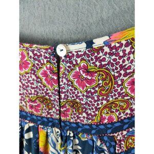 ENTRO Women Tunic Dress SZ M Patchwork Floral Lace Flare Pleated 3/4 Sleeve Boho