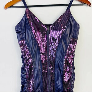 ENTRY Purple Faux Leather Sequin Bodycon Dress Size Small