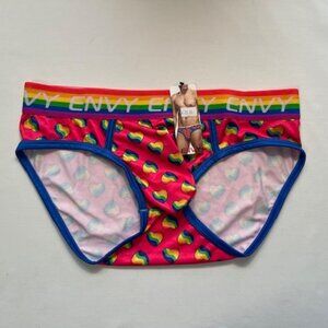 ENVY Size "S/M" Rainbow Hearts PRIDE Briefs - Fuchsia/Blue/PRIDE Colors