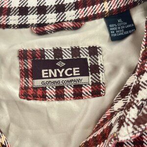 Pre-owned, gently used Vintage ENYCE from the late 90s Men's Baggy Button-Down Long Sleeve Shirt in size XL with a very 90s colorway of cream, rust, brown, and gold in a houndstooth pattern. ENYCE was a go-to brand for the bigger fellas in the late 90s and early aughts because they made larger sizes in trendy styles meant to be slouchy, not just oversized. Cut larger, but still with the intended drape, like this one!