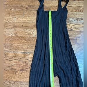 ENZA COSTA Black ribbed unitard short onezie romper size XS