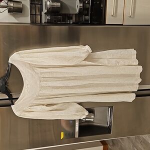 💕ENZA COSTA💕 Crinkled Cotton Voile Lurex Mini Dress ~ White/Gold NWT