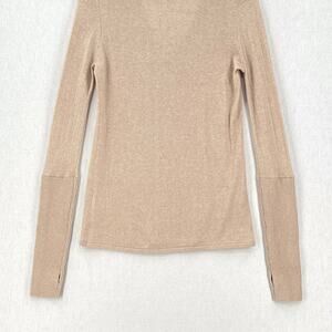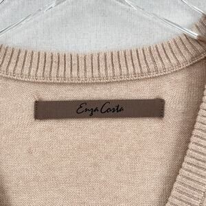 ENZA COSTA Fine Cashmere Knitted V-neck Sweater Medium Large Oatmeal Long Sleeve