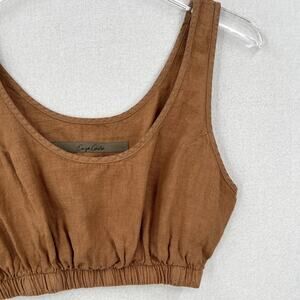 ENZA COSTA Linen Crop Tank Bra Top Womens Small Brown Layer Minimal Revolve NEW