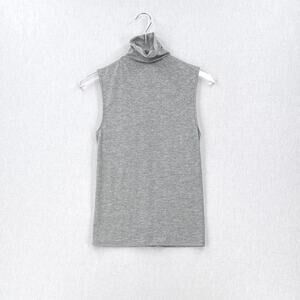 ENZA COSTA Lurex Jersey Sleeveless Turtleneck Top Womens Medium Light Gray NEW